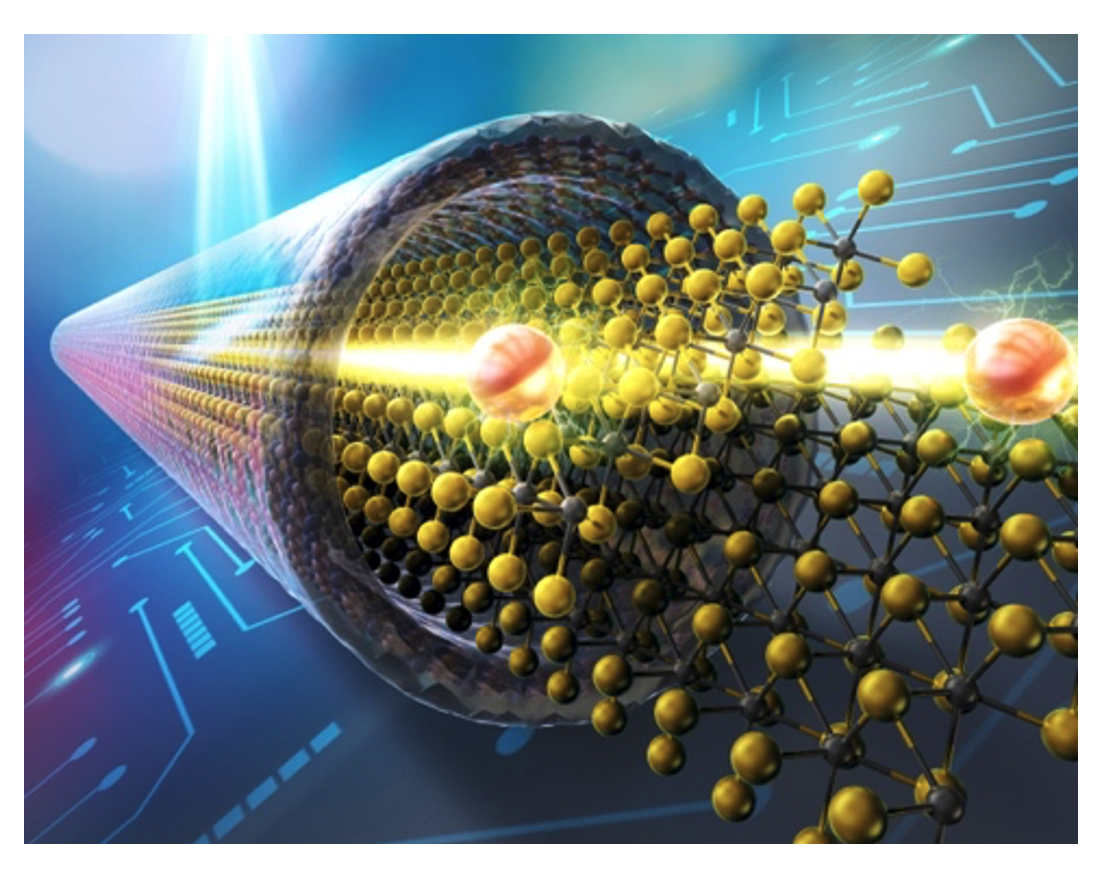 • 窒化ホウ素(BN)ナノチューブの内部に数ナノメートル幅のMoS₂ナノリボンを精密合成。