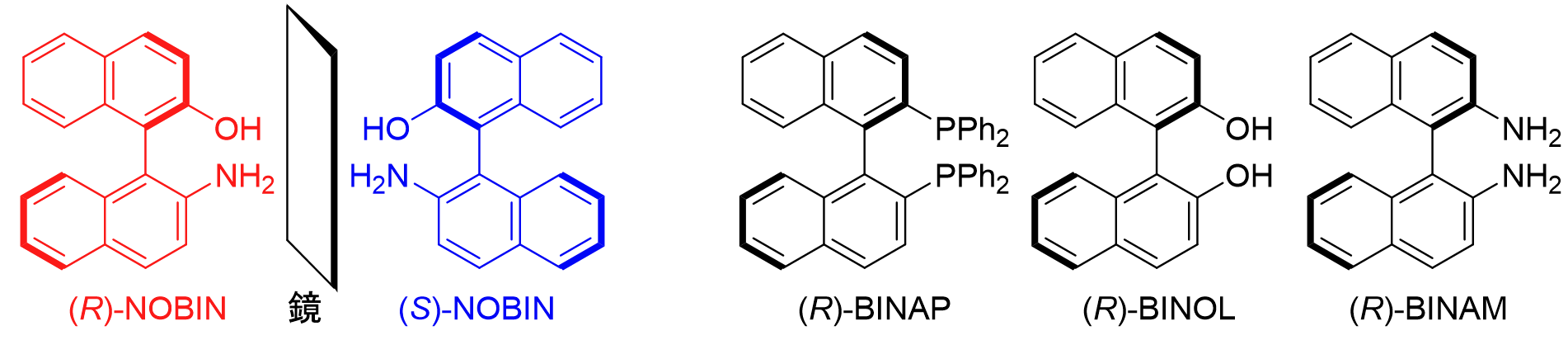 図2. 軸不斉を有する代表的な有機分子化合物NOBIN, BINAP, BINOL, BINAM