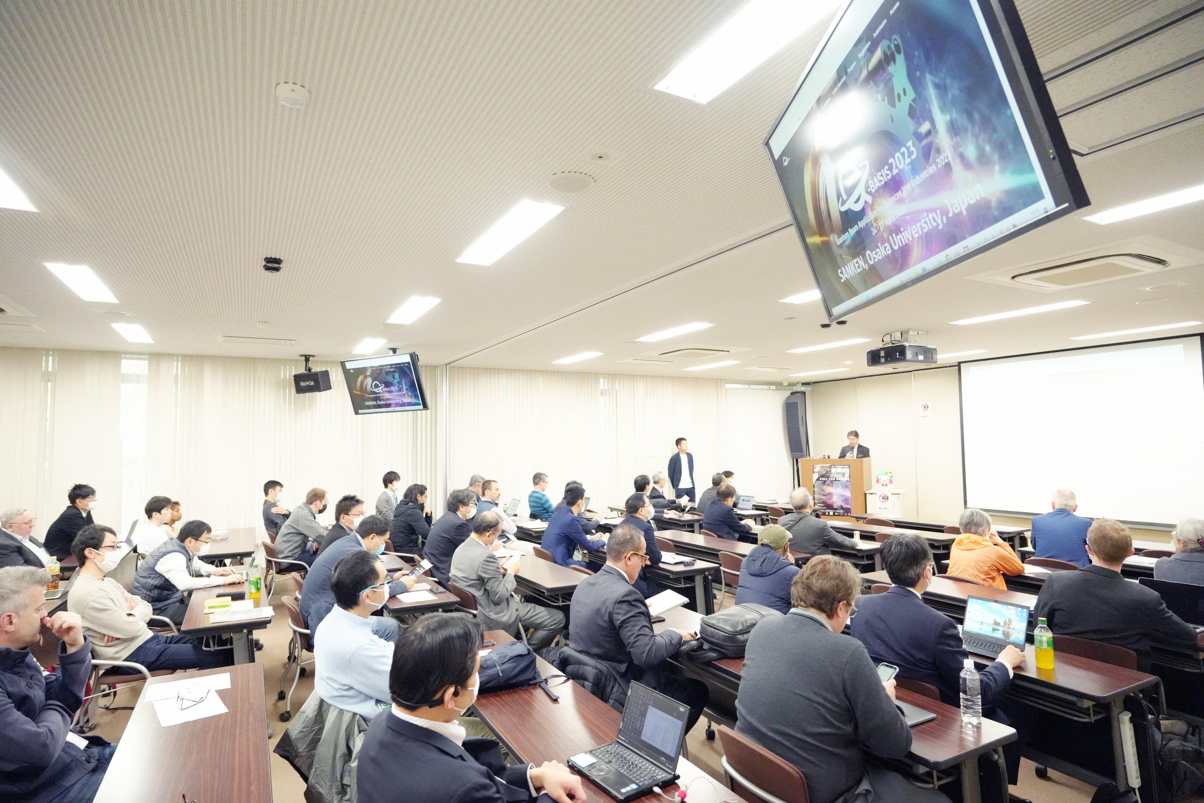 4月24(月)−27(木)、量子ビームの応用に関する国際会議Q-BASIS 2023 (Quantum Beam Application for Sciences and Industries 2023) をJST未来社会創造事業大規模プロジェクト型「レーザー駆動による量子ビーム加速器の開発と実証」と産研との共催で産研講堂とSANKEN CReAを会場に、完全対面形式で開催しました。4月24日(月)から26日(水)の3日間は講演会とポスターセッションが、27(木)はSPring-8施設見学ツアーが行われました。26日(水)には日米協力による先端加速器フォーラムもジョイントし同時開催されました。 SANKEN CReAでは会議期間中、量子ビーム関連の企業展示も行われ11社の企業が参加しました。会期2日目である25日(火)夜には千里阪急ホテルにて対面立食形式のバンケットも催され、参加者はおよそ110名(米国、イギリス、フランス、ドイツ、チェコ、ロシア、ウクライナ、スペイン、中国、からの参加者およそ30名を含む)と国際色豊かな交流が行われました。 会議全体としては、口頭講演が35件、ポスター発表が30件、講演内容はパワーレーザー開発とその応用、材料科学への応用、医学生物応用、イメージング応用、自由電子レーザー(FEL)への応用、高エネルギー物理学、社会実装への展開、など基礎科学から産業応用まで量子ビーム利用の幅広い分野にわたり、会期中の産研講堂は、常にほぼ満席で活発な議論が交わされました。ポスター発表では若手研究者を中心に各ポスターで熱気に溢れる議論が行われ、コーヒーブレイク中は参加者同士がざっくばらんに情報交換・意見交換を行っていました。Q-BASIS 2024のキックオフミーティングも開催され、次回の開催を宣言し盛況のうちに閉会しました。