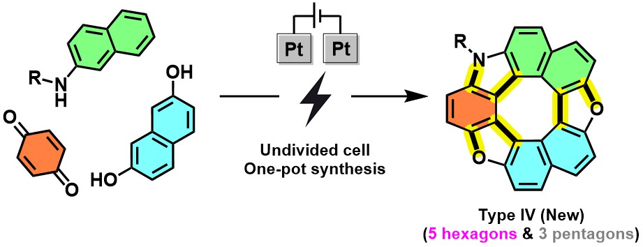 The team used electric current to drive an electrochemical synthesis, or reaction, to form six links between atoms at the same time. This then created a structure of five hexagons and three pentagons, with this novel structure being an unsymmetrical hetero[8]circulene, dioxaza[8]circulene.
